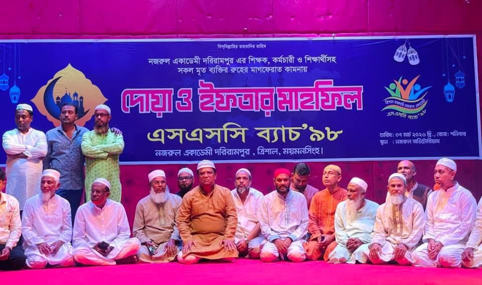 ত্রিশাল সরকারি নজরুল একাডেমি এসএসসি ‘৯৮ ব্যাচের উদ্যোগে দোয়া ও ইফতার মাহফিল অনুষ্ঠিত