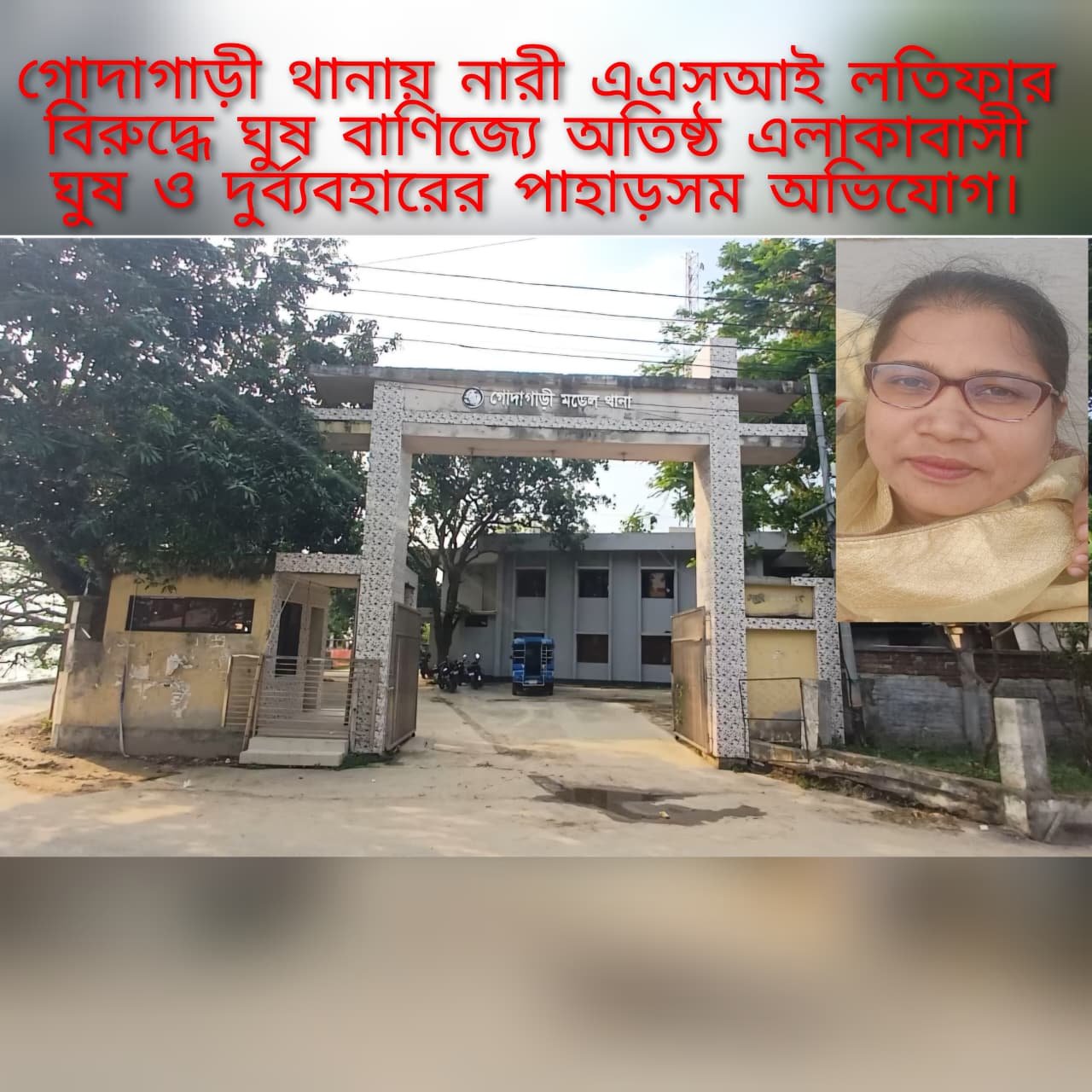 রাজশাহী রাজশাহীর গোদাগাড়ী মডেল থানায় কর্মরত নারী এএসআই (নিঃ) লতিফা খাতুনের বিরুদ্ধে সাধারণ সেবাগ্রহীতাদের জিম্মি করে ঘুষ গ্রহণ, টাকা দাবি এবং চরম দুর্ব্যবহারের অভিযোগ উঠেছে। জিডি থেকে শুরু করে অভিযোগ দায়ের—সবক্ষেত্রেই তার লালসার শিকার হচ্ছেন সাধারণ মানুষ। এমনকি দরিদ্র ভ্যানচালক কিংবা ৮৫ বছরের বৃদ্ধের টাকা হাতিয়ে নিতেও তার হাত কাঁপছে না বলে জানা গেছে।