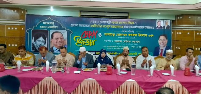আজ সন্ধ্যায় রাজধানীর একটি হোটেলে সাবেক প্রধানমন্ত্রী বেগম খালেদা জিয়া ও প্রয়াত নেতা ব্যারিস্টার মওদুদ আহমদের রুহের মাগফিরাত কামনায় আয়োজিত এক দোয়া ও ইফতার মাহফিলে প্রধান অতিথির বক্তব্যে তিনি এসব কথা বলেন।