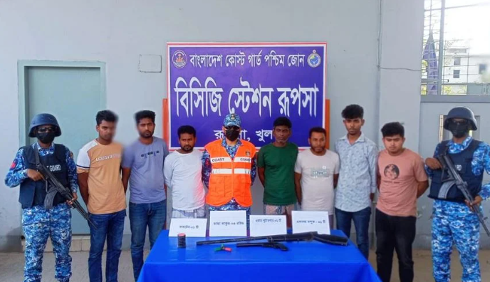 তিনি বলেন, গোপন সংবাদের ভিত্তিতে আজ ভোরে খুলনা জেলার দিঘলিয়া থানার গাজীরহাট এলাকায় একটি বিশেষ অভিযান পরিচালনা করে কোস্ট গার্ড স্টেশন রুপসা। অভিযানে ১টি একনলা বন্দুক, ১টি দেশীয় ওয়ান শুটার গান, ৩ রাউন্ড তাজা কার্তুজ এবং ১টি ককটেলসহ কুখ্যাত সন্ত্রাসী খবির মোল্লা গ্রুপের ৭ জন সদস্যকে আটক করা হয়।