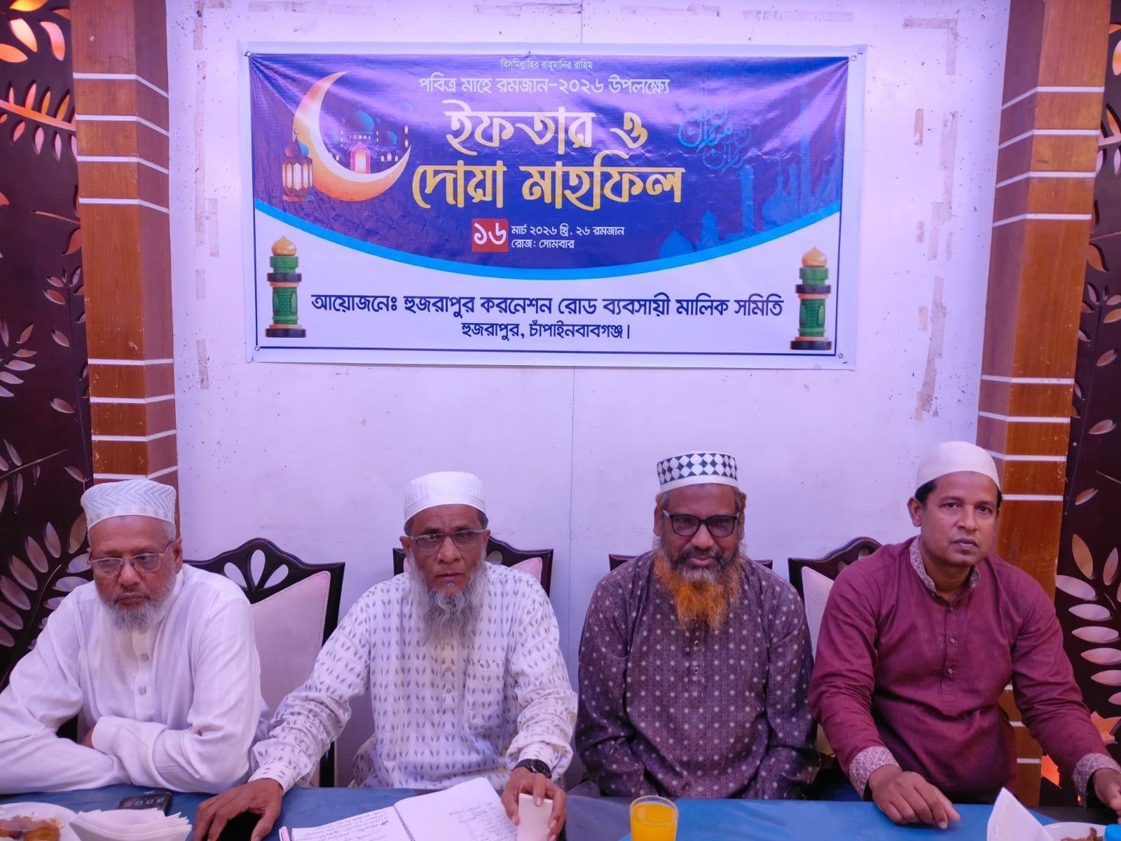 পবিত্র মাহে রমজান-২০২৬ উপলক্ষে চাঁপাইনবাবগঞ্জে হুজরাপুর করনেশন রোড ব্যবসায়ী মালিক সমিতির উদ্যোগে ইফতার ও দোয়া মাহফিল অনুষ্ঠিত হয়েছে।