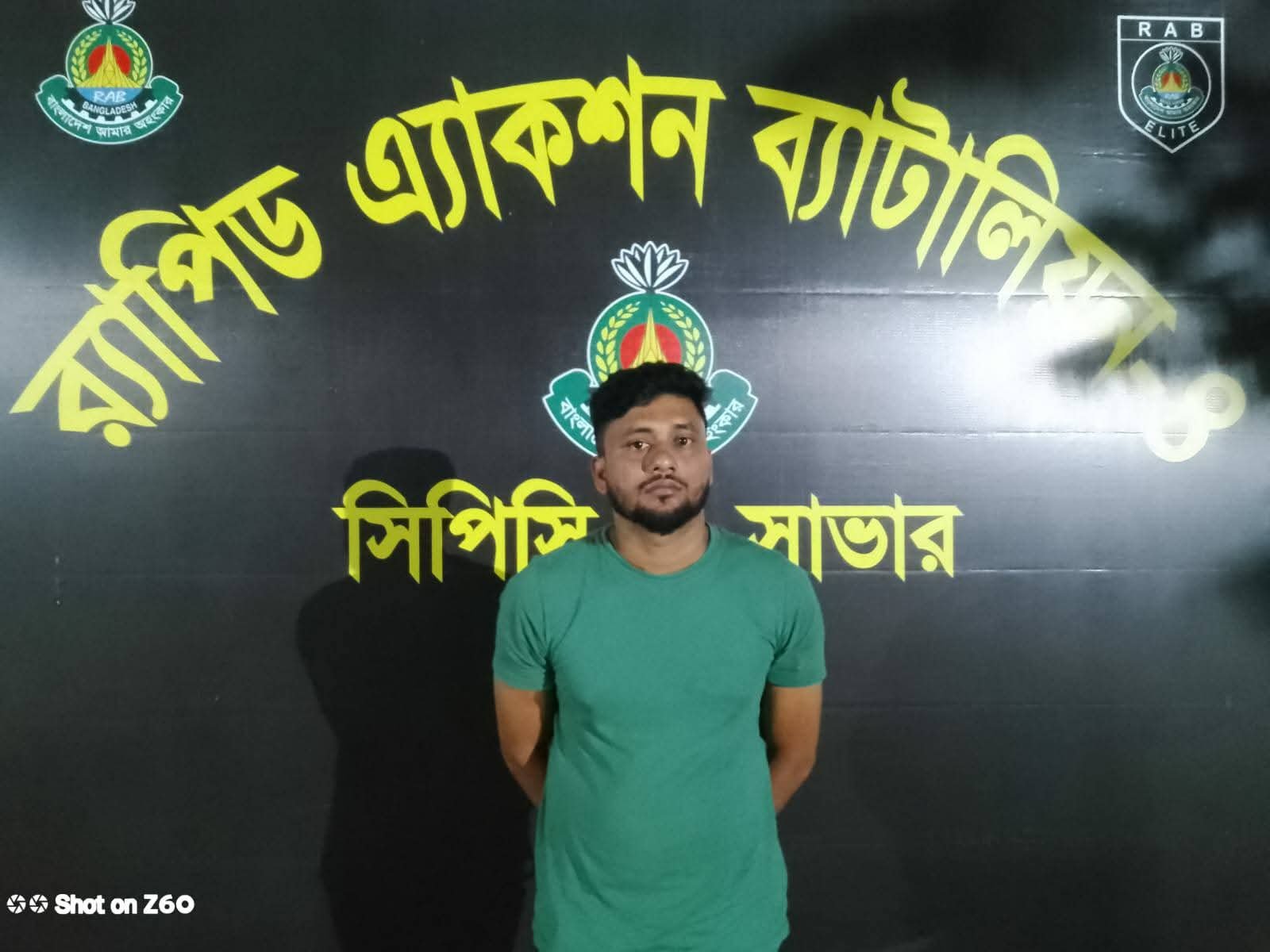 এর আগে, একইদিন আশুলিয়ার ইয়ারপুর ইউনিয়নের সিনসিন মোড় এলাকায় অভিযান চালিয়ে তাকে গ্রেপ্তার করা হয়।
