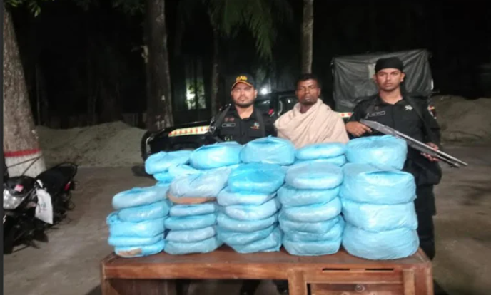 পিকআপে থাকা মাদক ব্যবসায়ী মানজারুল (৩৫)কে আটক করা হয়। এসময় পিকআপের চালক পালিয়ে যায়।