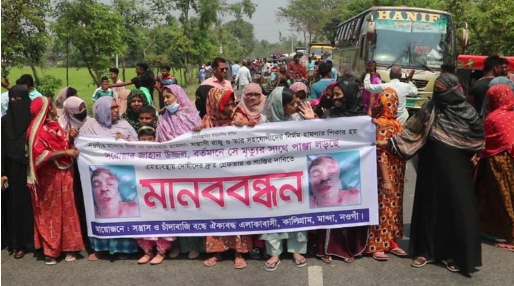 নওগাঁর মান্দা উপজেলায় চাঁদা না দেওয়ায় সারওয়ার জাহান উজ্জ্বল নামে এক ব্যক্তিকে নির্মমভাবে হাতুড়ি দিয়ে পিটিয়ে গুরুতর আহত করার অভিযোগ উঠেছে। এ ঘটনায় ক্ষোভে ফেটে পড়ে এলাকাবাসী, অভিযুক্তদের দ্রুত গ্রেপ্তারের দাবিতে নওগাঁ-রাজশাহী মহাসড়ক অবরোধ করে বিক্ষোভ কর্মসূচি পালন করে।