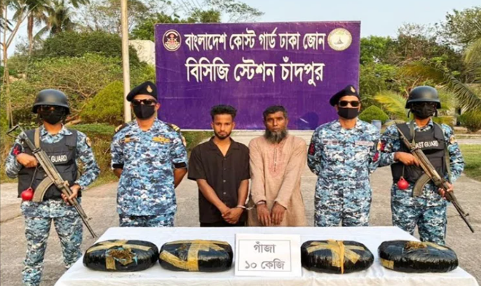 চাঁদপুরে গাঁজাসহ দুই কারবারিকে আটক করেছে কোস্টগার্ড