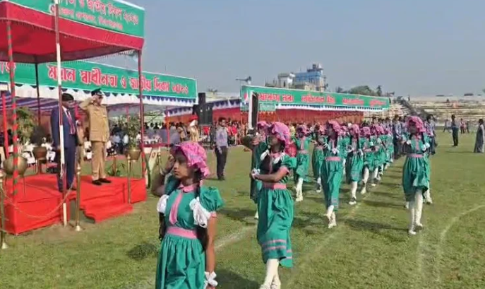 পরে সকাল ৮টায় জেলা ক্রিকেট স্টেডিয়ামে বর্ণাঢ্য কুচকাওয়াজ অনুষ্ঠিত হয়। এতে জেলার বিভিন্ন শিক্ষা প্রতিষ্ঠানের শিক্ষার্থী, স্কাউট, গার্লস গাইড, রোভার স্কাউট এবং বিভিন্ন সংগঠনের সদস্যরা অংশগ্রহণ করে মনোমুগ্ধকর বিভিন্ন শারিরীক কসরত উপস্থাপন করে। কুচকাওয়াজে অংশগ্রহণকারী দলগুলোর শৃঙ্খলা, দক্ষতা ও দেশাত্মবোধক গান পরিবেশন উপস্থিত দর্শকদের মুগ্ধ করে।
