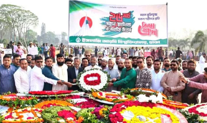 মহান স্বাধীনতা ও জাতীয় দিবস উদযাপন করেছে ইসলামি আরবি বিশ্ববিদ্যালয় (ইআবি)। দিবসটি উপলক্ষ্যে আজ বৃহস্পতিবার সকালে সাভারের জাতীয় স্মৃতিসৌধে মহান মুক্তিযুদ্ধের বীর শহীদদের প্রতি গভীর শ্রদ্ধা নিবেদন করা হয়েছে।