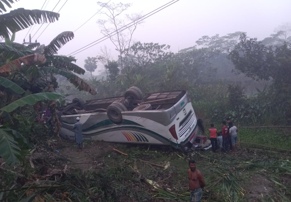 ঢাকা-বরিশাল মহাসড়কে যাত্রীবাহী বাস খাদে পড়ে এক নারী নিহত