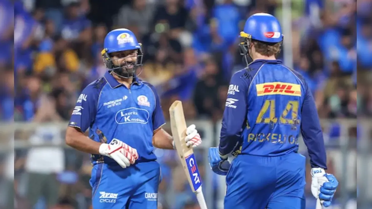 • জবাবে শুরু থেকেই ম্যাচের নিয়ন্ত্রণ নিজেদের দখলে নিয়ে নেই মুম্বাই। রোহিত শর্মা ও রায়ান রিকেলটন মিলে ১৪৮ রানের জুটি গড়ে। রোহিত ৩৮ বলে ৭৮ রান করেন এবং রায়ান ৪৩ বলে ৮১ রান করে করে সাজঘরে ফেরেন।