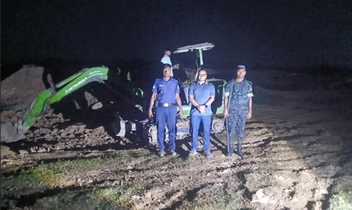 এ সময় ঘটনাস্থল থেকে একটি এস্কেভেটর এবং একটি ড্রাম ট্রাক জব্দ করা হয়। তবে জড়িত লোকজন পালিয়ে যায়।