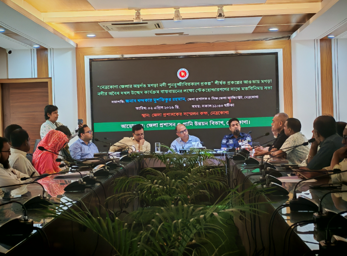 ‘নেত্রকোণা জেলার অন্তর্গত মগড়া নদী পুনরুজ্জীবিতকরণ প্রকল্প’র আওতায় অবৈধ দখল উচ্ছেদ কার্যক্রম বাস্তবায়নে এ সভা অনুষ্ঠিত হয়।