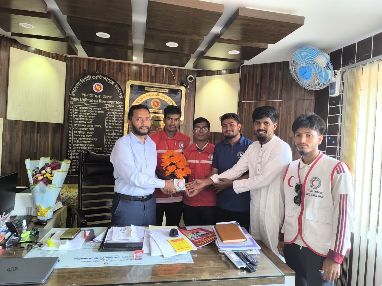 ভোলার লালমোহনে নবনিযুক্ত উপজেলা নির্বাহী কর্মকর্তা (ইউএনও) মোহাম্মদ সিফাত বিন সাদেকের সঙ্গে সৌজন্য সাক্ষাৎ ও মতবিনিময় করেছে বাংলাদেশ রেড ক্রিসেন্ট সোসাইটির লালমোহন উপজেলা যুব ইউনিট।