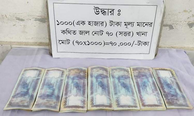 পুলিশ জানায়, গোপন সংবাদের ভিত্তিতে ওই হোটেলের তৃতীয় তলার একটি কক্ষে অভিযান চালিয়ে তাদের গ্রেফতার ও ৭০ পিস এক হাজার টাকা মূল্যমানের ৭০ হাজার জাল নোট উদ্ধার করা হয়।