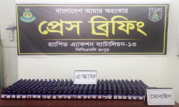 লালমনিরহাটে র্যাবের যৌথ অভিযানে ২৯৮বোতল অবৈধ মাদকদ্রব্য এসকাফ উদ্ধারসহ এক মাদক ব্যবসায়ীকে গ্রেপ্তার করা হয়েছে।
