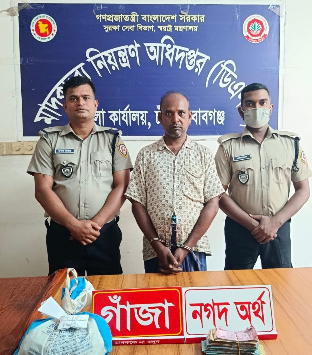 চাঁপাইনবাবগঞ্জে ডিএনসি’র অভিযানে গাঁজাসহ আটক ১