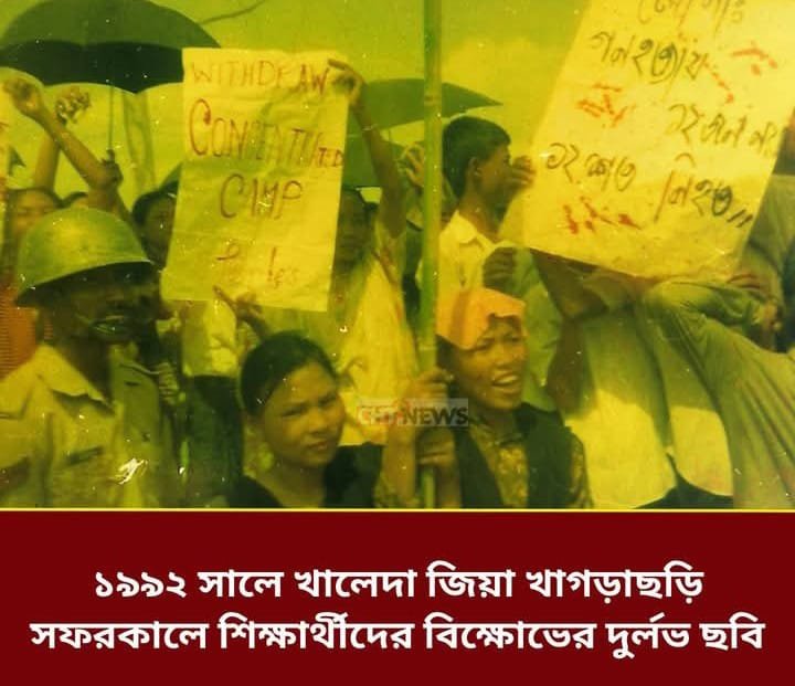 ‘বন্দীশিবির গুচ্ছগ্রাম, শান্তিগ্রাম, বড়গ্রাম ভেঙ্গে দিতে হবে’ প্ল্যাকার্ড প্রদর্শন করছে এক শিক্ষার্থী।