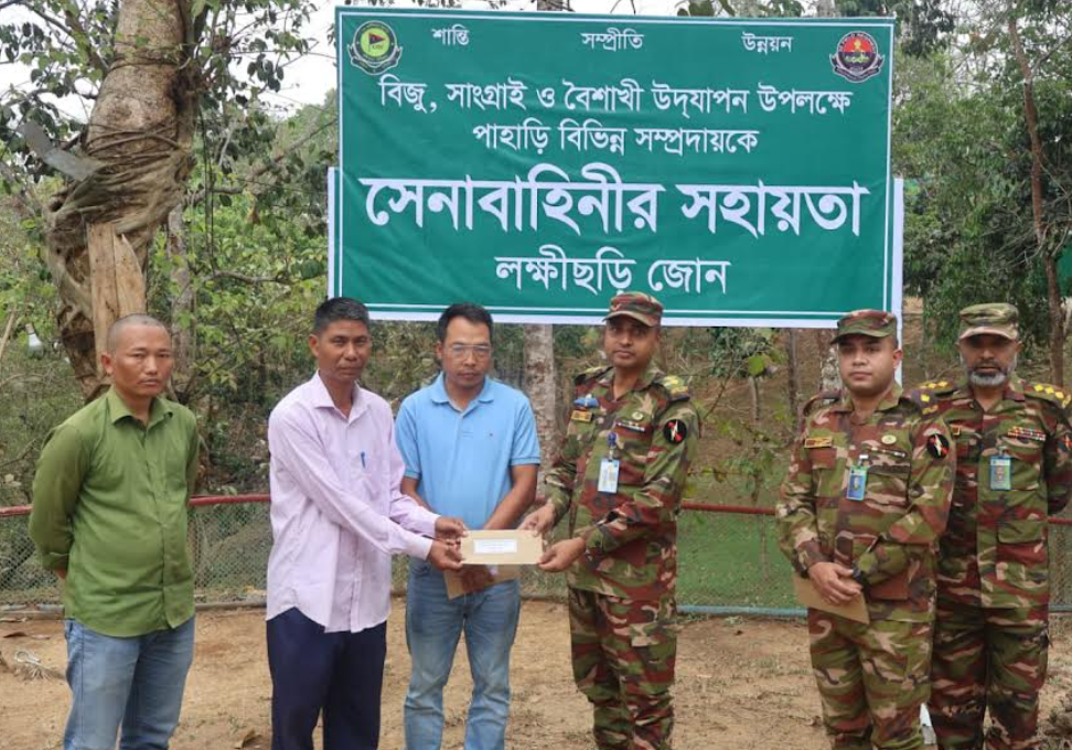 জেলায় ঐতিহ্যবাহী মহা বিজু, সাংগ্রাই ও বৈশাখী উৎসব উপলক্ষে পাহাড়ি বিভিন্ন সম্প্রদায়ের আয়োজকদের আর্থিক সহযোগিতা প্রদান করেছে সেনাবাহিনী।