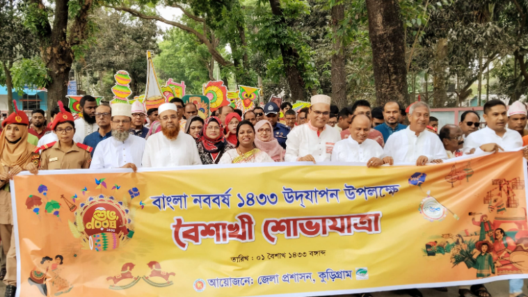 পহেলা বৈশাখ উপলক্ষে সকালে কুড়িগ্রাম জেলা প্রশাসকের কার্যালয় প্রাঙ্গণ থেকে এক বর্ণিল শোভাযাত্রা বের হয়। রঙিন ব্যানার-ফেস্টুনে সজ্জিত শোভাযাত্রাটি শহরের প্রধান প্রধান সড়ক প্রদক্ষিণ শেষে ‘আই লাভ কুড়িগ্রাম’ চত্বরে গিয়ে শেষ হয়। বিভিন্ন সামাজিক ও সাংস্কৃতিক সংগঠনের প্রতিনিধি এবং শিক্ষা প্রতিষ্ঠানের শিক্ষক-শিক্ষার্থীরা এতে অংশ নেন।