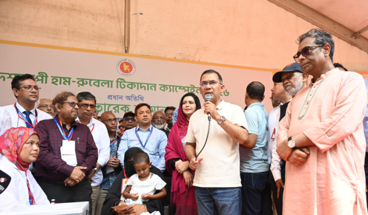প্রধানমন্ত্রী তারেক রহমান বগুড়ায় হাম-রুবেলার টিকাদান কর্মসূচির উদ্বোধন করেছেন ।