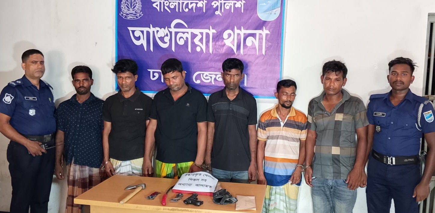 গ্রেপ্তার আসামিরা হলেন- মানিকগঞ্জ জেলার দৌলতপুর থানার বাগুটিয়া চরকাটারী পাড়া এলাকার মৃত শুকচাঁন শেখ ওরফে শুকচাঁন মোল্লার ছেলে মো. শহিদুল ইসলাম ওরফে হাতকাটা শহিদ (৪৪), কুড়িগ্রাম জেলার উলিপুর থানার পারুলের পাড় এলাকার মৃত সেকেন্দারের ছেলে মো. আব্দুর রহিম (৪০), মানিকগঞ্জ জেলার দৌলতপুর থানার বাচামারা এলাকার জনাব আলীর ছেলে মো.জুয়েল রানা (৪২), একই এলাকার মৃত লেদু শেখের ছেলে মো. মিজান শেখ (৫০), নাটোর জেলার বাগাতিপাড়া থানার জিগারী এলাকার মৃত মাছেম উদ্দিন প্রামানিকের ছেলে মো. জহুরুল ইসলাম (৪১), সিরাজগঞ্জ জেলার রায়গঞ্জ থানার তেলিবাজানা এলাকার সিদ্দিকুর রহমানের ছেলে মো. আব্দুল মমিন (৪০)। তারা সকলেই আশুলিয়ার বিভিন্ন এলাকায় ভাড়াবাসায় বসবাস করে আসছিলেন।
