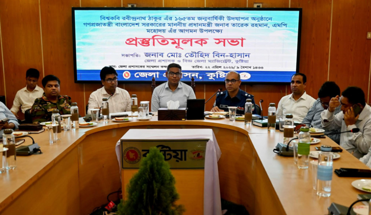 আগামী ৮ মে কুষ্টিয়ায় প্রধানমন্ত্রীর সফর সুষ্ঠু ও সফলভাবে সম্পন্ন করার লক্ষ্যে এ সভায় বিস্তারিত আলোচনা করা হয়। একইসাথে বিশ্বকবি রবীন্দ্রনাথ ঠাকুরের ১৬৫তম জন্মবার্ষিকী উদ্যাপনকে কেন্দ্র করেও প্রয়োজনীয় প্রস্তুতির বিষয়গুলো নিয়ে আলোচনা করা হয়।