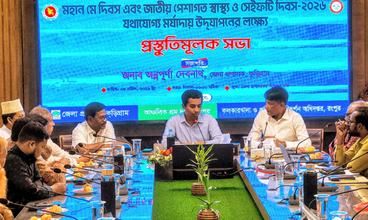 মহান মে দিবস এবং জাতীয় পেশাগত স্বাস্থ্য ও সেফটি দিবস যথাযোগ্য মর্যাদায় উদযাপনের লক্ষ্যে কুড়িগ্রামে আজ এক প্রস্তুতিমূলক সভা অনুষ্ঠিত হয়েছে।