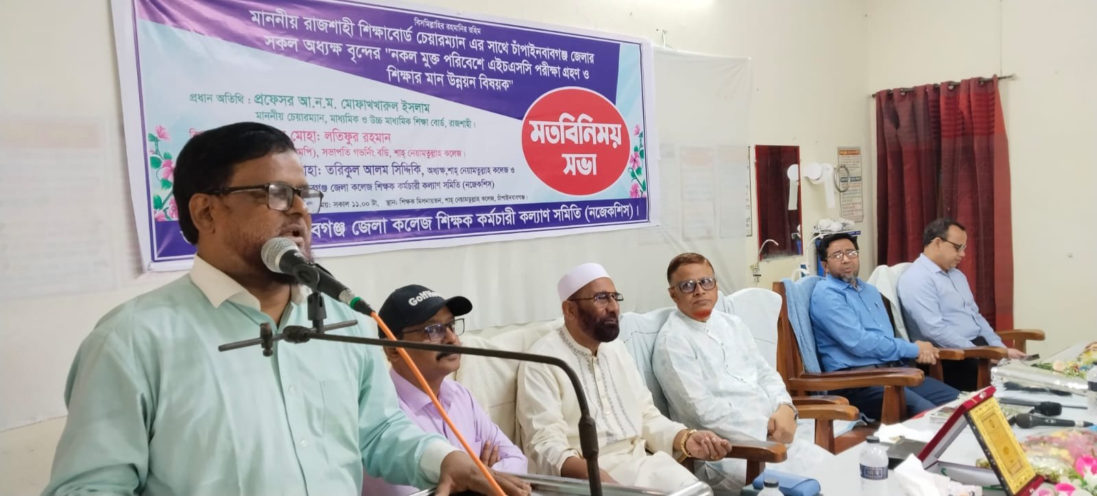 রাজশাহী শিক্ষা বোর্ডের চেয়ারম্যান প্রফেসর আ.ন.ম. মোফাখখারুল ইসলাম। তিনি নকলমুক্ত পরিবেশ রক্ষায় শিক্ষক, প্রশাসন ও অভিভাবকদের সম্মিলিত প্রচেষ্টার ওপর জোর দেন।শাহ্ নেয়ামতুল্লাহ কলেজের অধ্যক্ষ ও সমিতির সভাপতি মোহাঃ তরিকুল আলম সিদ্দিকি।